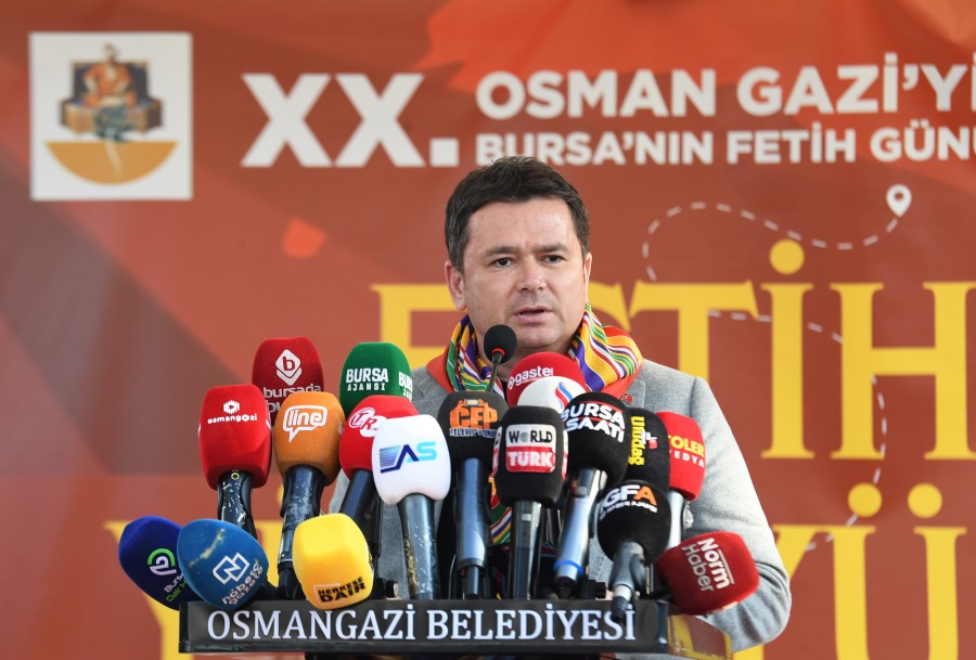 Osmangazi Belediyesi, Bursa'nın fethinin 699'uncu yıldönümünde düzenlediği Osman Gazi'yi Anma ve Bursa'nın Fetih Günü Etkinlikleri ile fetih coşkusunu tüm kente bir kez daha yaşatıyor. Bu yıl 20'incisi gerçekleştirilen Fetih Günü Etkinlikleri kapsamında Tophane Meydanı'nda görkemli bir açılış töreni gerçekleştirildi. Tophane Meydanı'nda gerçekleştirilen şenliklerin açılış töreni, Bursa Mehter Takımı'nın gösterisiyle başladı. Bursalıların büyük ilgi gösterdiği açılış töreninde sahne alan Kılıç Kalkan Ekibi'nin gösterisi ise coşkuyu doruğa çıkardı. Osmangazi Belediye Başkanı Erkan Aydın'ın ev sahipliğinde gerçekleştirilen açılış törenine Osmangazi Kaymakamı Ali Partal, Büyükşehir Belediye Başkan Vekili Mustafa Orkun Gazioğlu, CHP Osmangazi İlçe Başkanı Raşit Gürbüz, Büyük Birlik Partisi Genel Başkan Yardımcısı Ekrem Alpatlı, Moğolistan, Kosova ve Bosna Hersek'teki kardeş şehirlerin belediye başkanları ve temsilcileri ile birlikte çok sayıda davetli katıldı.
