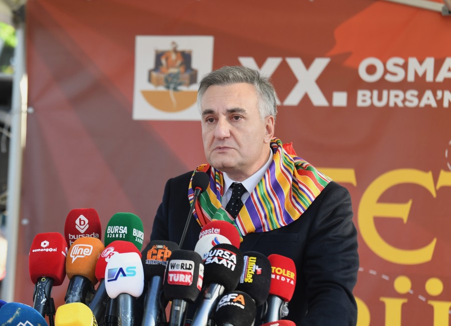 Osman Gazi'yi Anma ve Bursa'nın Fetih Günü Etkinlikleri'nin açılış töreninde yaptığı konuşmada, Bursa'nın 699 yıl önce, 23 yıllık bir kuşatmanın sonunda fethedildiğini dile getiren Başkan Aydın, "Osman Gazi'nin çok istediği ancak oğlu Osman Gazi'ye nasip olan bu kutlu şehrin fethi sırasında tek bir damla kan dökülmedi. Bugün, Osmanlı'ya başkent olmuş, hem Osmanlı tarihi hem de Cumhuriyet tarihi boyunca çok önemli gelişmelere ev sahipliği yapmış Bursa'nın fethini kutluyoruz. Ecdadımız, fethin ardından sürdürdüğü adaletli ve hoşgörülü yönetim anlayışı ile 600 yıl sürecek olan Osmanlı İmparatorlu'nun temellerini atmışlar. Bursa, kuruluşta ne kadar öneme sahipse, kurtuluşta da aynı öneme sahip. Bursa'nın işgali sırasında Yunan komutan Osman Gazi'nin türbesinde fotoğraf çektirmiş ve 'Osman kalk imparatorluğunu kurtar' diyerek saygısızlık yapmıştır. Bursa'nın işgal edildiği ve Osman Gazi'ye yapılan bu saygısızlığın haberi Ankara'da bulunan İlk Meclis'te büyük üzüntüye yol açmış, 10 Temmuz 1920'de Meclis kürsüsüne siyah örtü (Puşide-i Siyah) örtülmüştür. Bursa, 2 yıl 2 ay 2 gün süren düşman işgalinden kurtulduktan sonra o siyah örtü kaldırılmıştır" dedi.