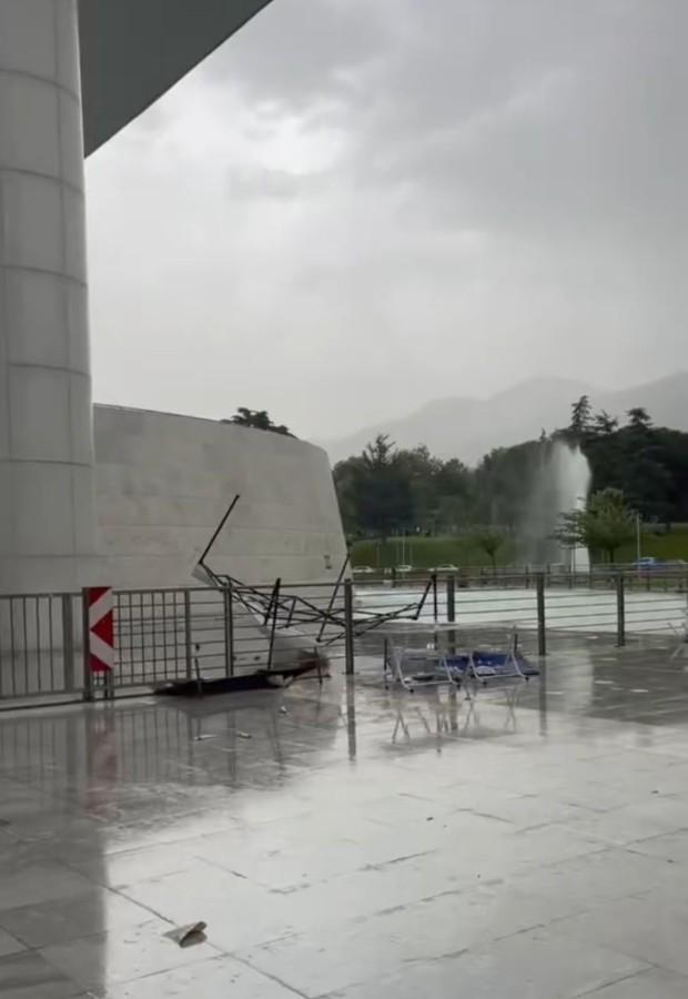 Edinilen bilgiye göre, festival girişinde yer alan büyük boyutlu reklam panoları, şiddetli rüzgarın etkisiyle yerinden sökülerek savruldu.