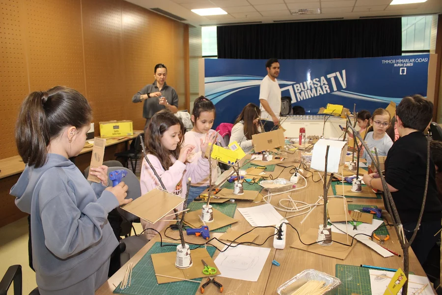Mimarlar Odası Bursa Şubesi, 23 Nisan Ulusal Egemenlik ve Çocuk Bayramı kapsamında düzenlediği 'Çocuk Atölyesi' ile geleceğin mimarlarını bir araya getirdi. 7-12 yaş arasındaki çocukların katıldığı etkinlikte minik katılımcılar, hayal güçlerini kullanarak ağaç ev tasarladı.