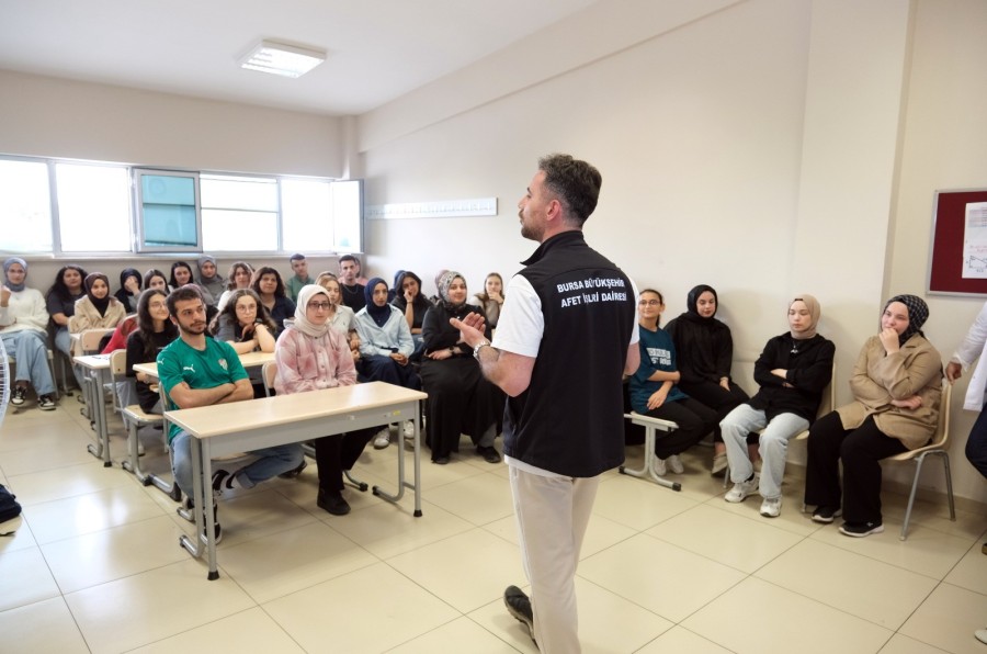 Bursa'nın daha dirençli, daha güvenli ve yaşanabilir bir kent olması için katılımcı bir anlayışla çalışmalarını sürdüren Büyükşehir Belediyesi, toplumun tüm kesimlerinde afet bilincinin oluşması için de eğitim programlarını sürdürüyor. Büyükşehir Belediyesi bünyesindeki Afet Koordinasyon Merkezi'nin (AKOM) uzman ekibi tarafından BUSMEK'in YKS Hazırlık Merkezlerinde gençlere afet farkındalık eğitimi verildi.