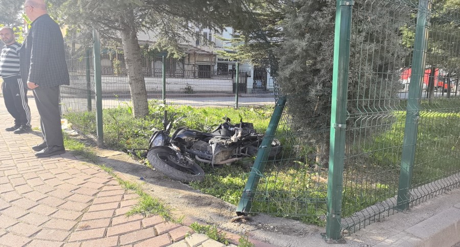 Savrulan motosikletlerden biri yeşil alan çiftine çarparak devrildi.