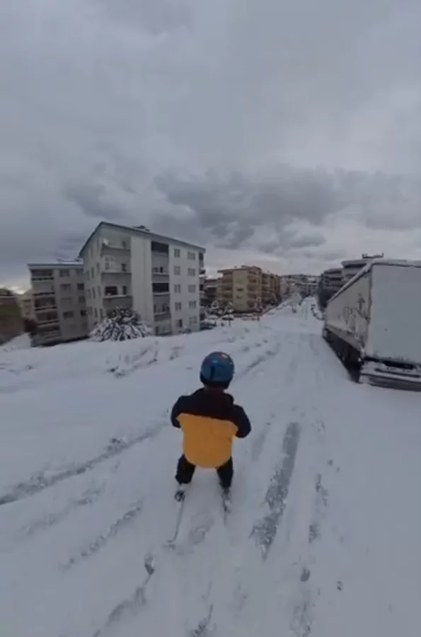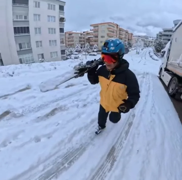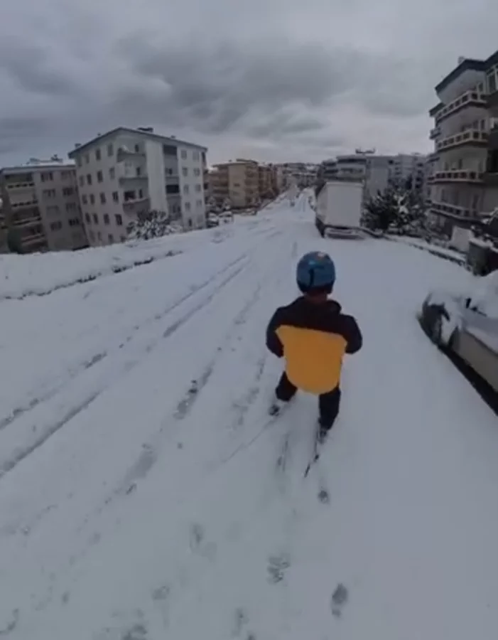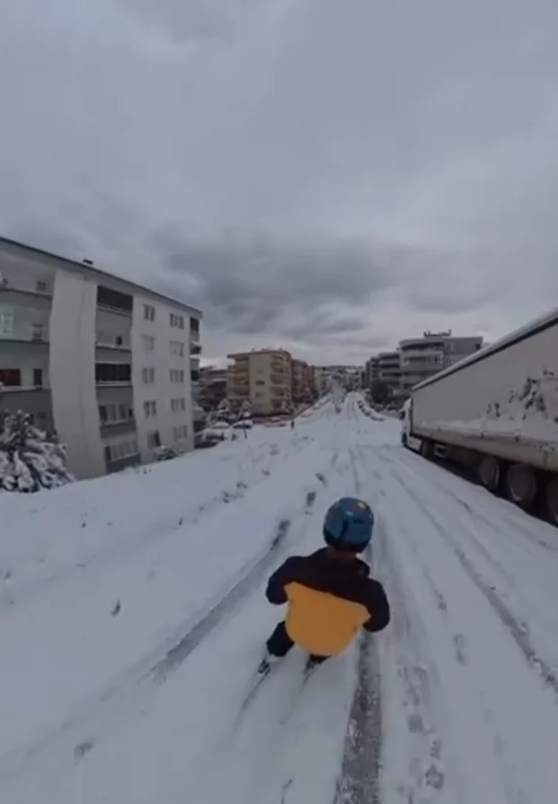 Kayak yaparken kendini kayda da alan vatandaş, karla kaplanan yollarda rahatlıkla ilerlediği anları sosyal medyada paylaştı. Görüntüler kısa sürede ilgi gördü.