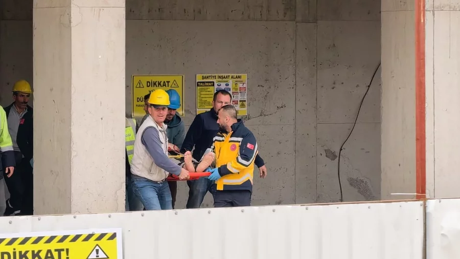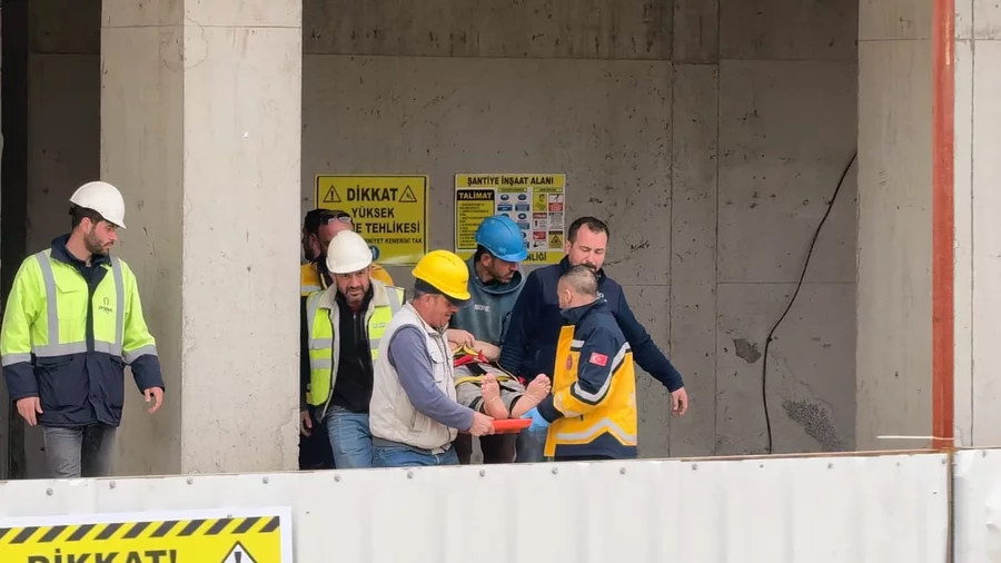 Bursa'nın İnegöl ilçesinde yapımı devam eden bir inşaatta çalışan işçi, 2. kattan düşerek yaralandı.