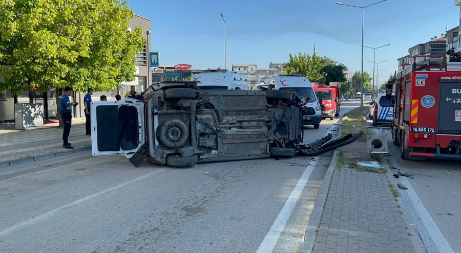 Kaza sebebiyle Nilüfer Caddesi bir süreliğine trafiğe kapatılırken, takla atan aracın kaldırılmasıyla yol normale döndü.