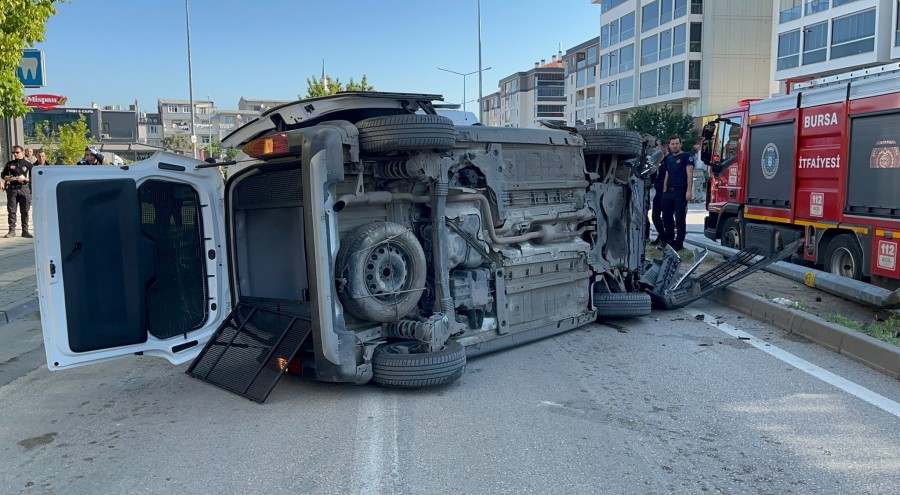 Bursa'da kadına şiddet ihbarından dönen polis aracı takla attı. Kazada, 2'si polis 4 kişi yaralandı. Polislerin ve diğer yaralıların sağlık durumlarının iyi olduğu açıklandı.