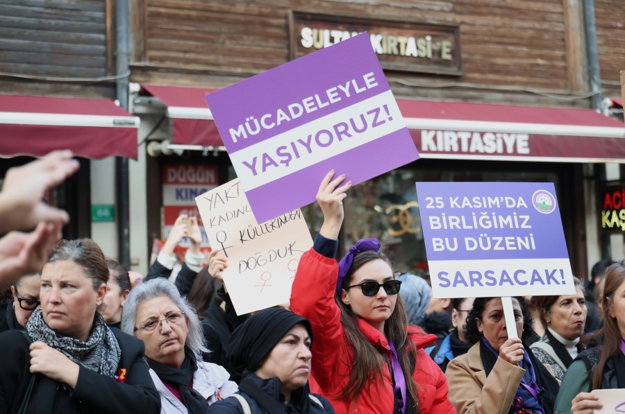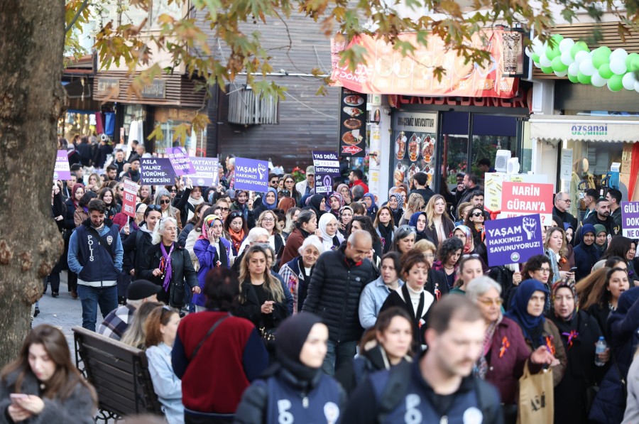 Bursa'da binlerce kadın 25 Kasım Kadına Yönelik Şiddete Karşı Uluslararası Mücadele Günü'nde kadın haklarını savunmak, şiddetsiz bir yaşam, adalet ve eşitlik için sokaklara çıkarak sloganlar eşliğinde yürüyüş yaptı.