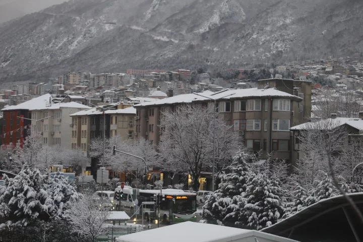 Bursa'da sabah saatlerinde etkili olan kar yağışı kenti beyaza bürüdü. Hava sıcaklığının eksi 2 derecelere kadar düştüğü şehirde, özellikle sabah saatlerinde ulaşımda zaman zaman aksamalar yaşandı. Bursa Büyükşehir Belediyesi ekipleri de iş makineleri ile ana arterlerde çalışma yaparak yolları açtı.