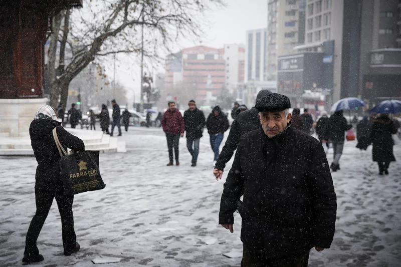 Vatandaşlar kentte etkili olan mevsimin ilk kar yağışını cep telefonlarıyla görüntüledi, yağıştan korunmak için şemsiye kullandı.