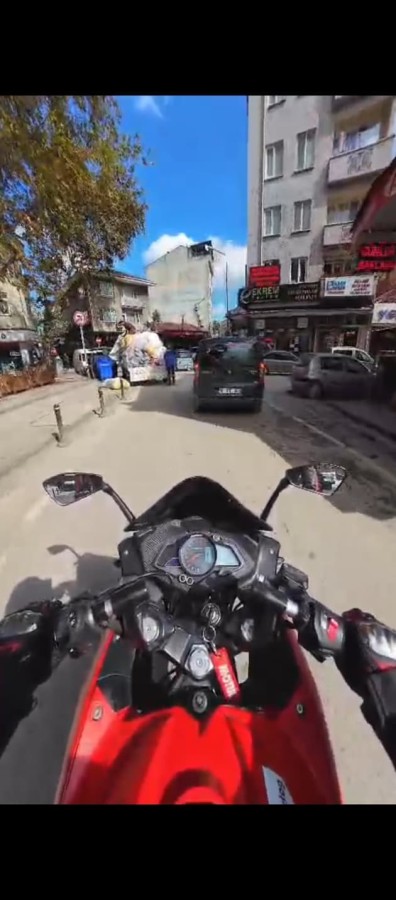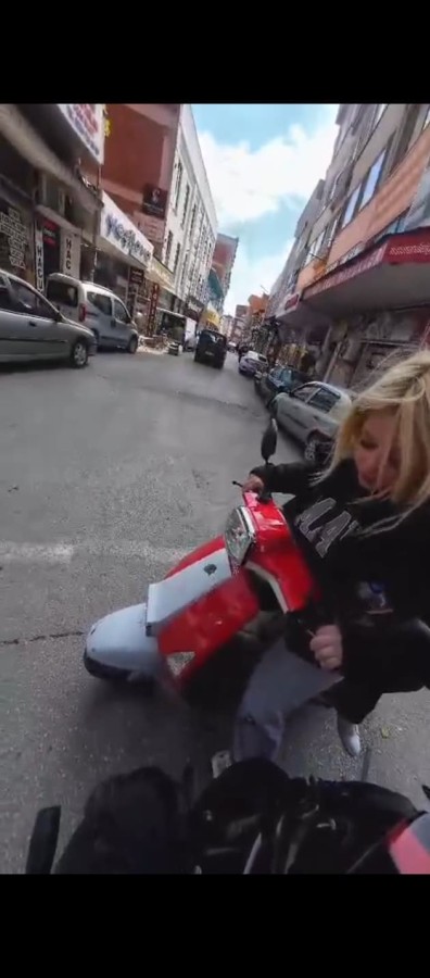 Çarpmanın ardından kadın sürücü, "Vallahi önüme yaprak düştü, bir şeyin var mı? Plakan yamulmuş, masraf falan çıkar mı? Bacağım çok acıyor. Önüme yaprak geldi, yaprağa bakarken duramadım. Özür dilerim kusura bakma" dedi.