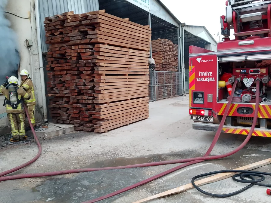 Mahmudiye Mahallesi Kafkas Sokak'ta faaliyet gösteren kereste deposunda henüz bilinmeyen nedenle yangın çıktı.