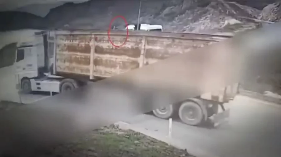 Kırmızı ışıkta geçen kamyon kameralara takıldı