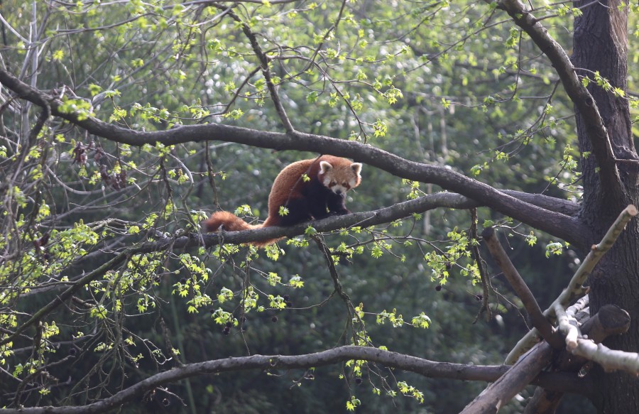 Bursa Büyükşehir Belediyesi Hayvanat Bahçesi'nde kızıl pandalar, bakıcılarının kova ile çıkardığı sesle harekete geçmeye başladı.