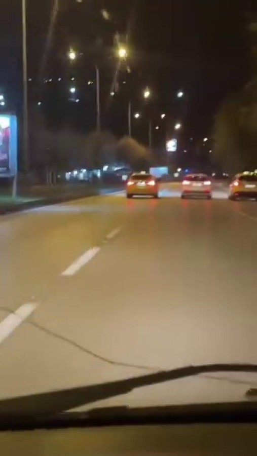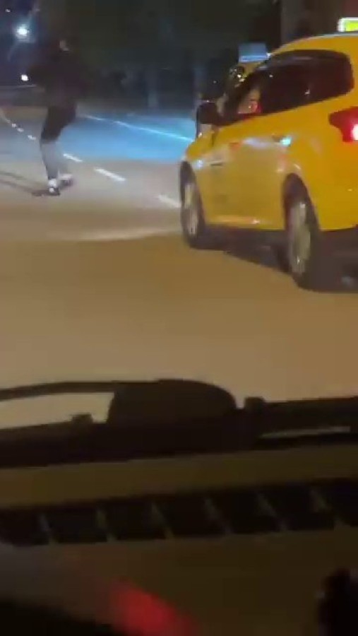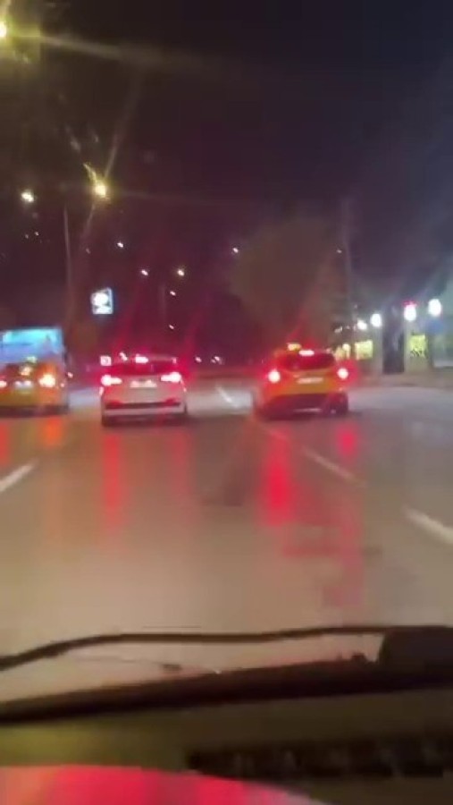 Öte yandan, yaşanan kovalamacada taksiden inen bir kişinin ise, korsan taşımacılık iddiası ile kovaladıkları şahsın aracına tekme atmaya çalışması kameraya anbean yansıdı.