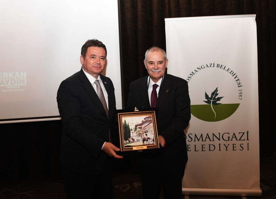 Düzenlenen söyleşinin ardından Osmangazi Belediye Başkanı Erkan Aydın, Cumhuriyet Vakfı Genel Sekreteri Işık Kansu'ya günün anısına hediye takdim etti.