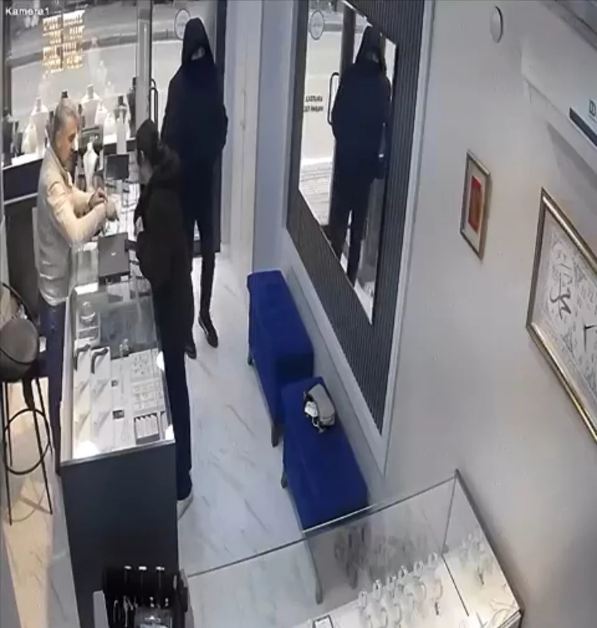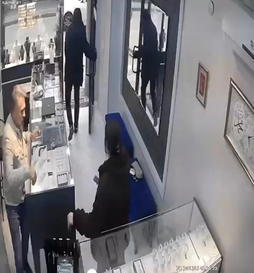 Bir süre kendi aralarında bakışan soyguncu, kuyumcuya kararsız hareketlerle silah çekip, altınları istedi.