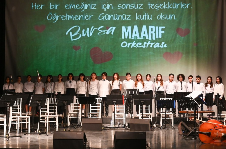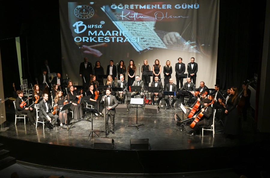 Bursa İl Millî Eğitim Müdürlüğü tarafından, 24 Kasım Öğretmenler Günü etkinlikleri kapsamında düzenlenen Maarif Orkestrası "Öğretmenin Sesi" konseri, eğitim camiasını sanatın ortak dilinde buluşturdu.
