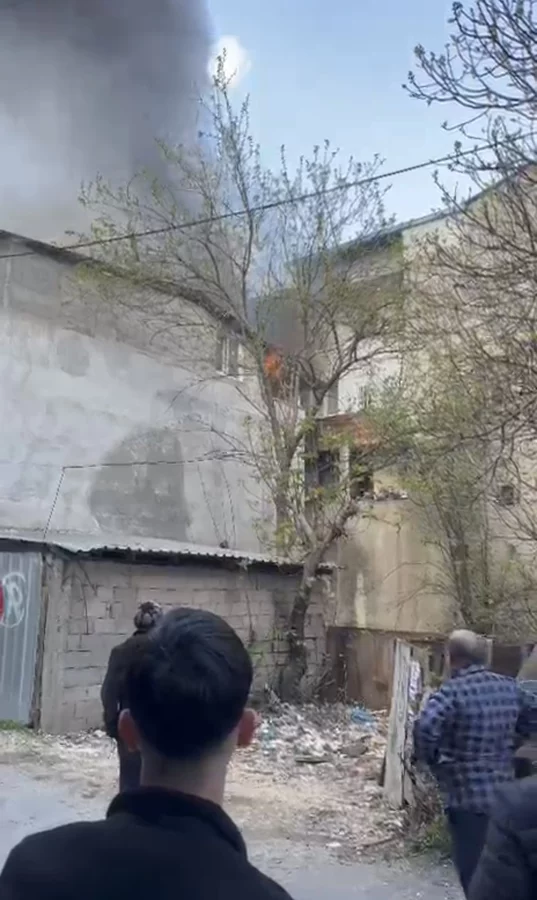 Kısa sürede büyüyen yangın çatı katını tamamen sararken, mahalle sakinleri büyük panik yaşadı.