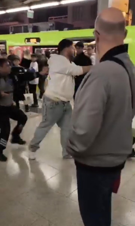 Bursa'da metro istasyonunda güvenlik görevlisi ile bir şüpheli arasında çıkan kavgada dubalar, yumruklar havada uçuştu. O anlar kameraya yansıdı. Bazı vatandaşlar kavgayı ayırmak için seferber olurken, bazıları ise olan bitenleri boks maçı izler gibi spikerlik yapıp kayda aldı.