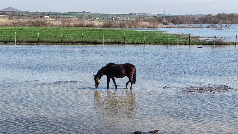 Uluabat Gölü, Bursa-İzmir kara yolunun kıyısına kadar gelirken bölgede bulunan milyonluk yarış atlarının bulunduğu tarlalar da su altında kaldı. Arap ve İngiliz yarış atları, su içinde gezinirken drone ile görüntülendi. Milyonluk tayların annesi olan damızlık atların büyük kısmının gebe olması da dikkat çekti.