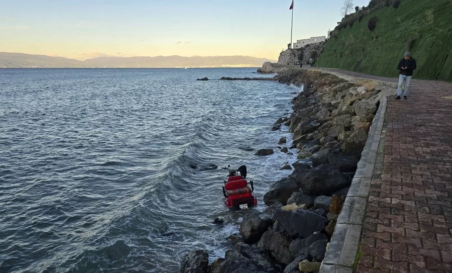 Altıntaş sahilinde seyreden 16 BSA 440 plakalı üç tekerlekli motosiklet, sürücüsünün kontrolünden çıkarak yaklaşık 3 metre yükseklikten denize düştü.