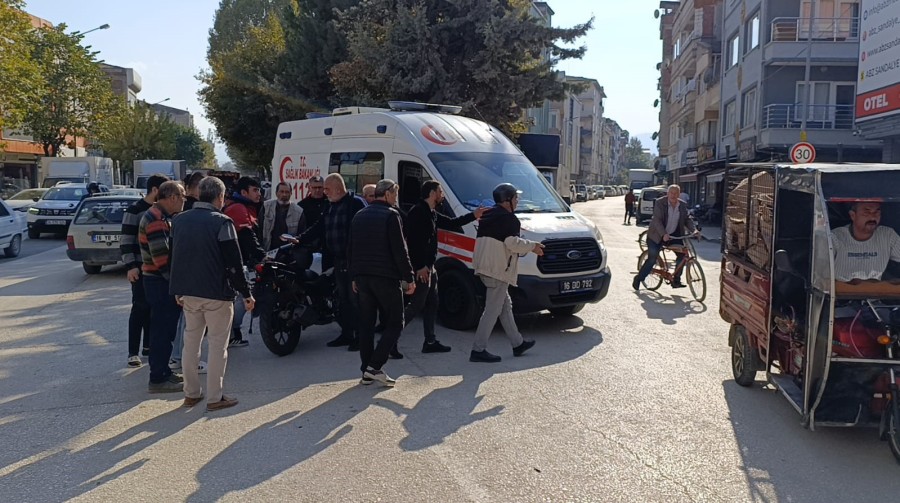 Kaza, saat 15.00 sıralarında Mahmudiye mahallesi Osmanbey Caddesinde meydana geldi. Edinilen bilgiye göre, cadde üzerinde seyir halinde olan Sürücü Serdar Ş. (17) yönetimindeki 16 KLF 73 plakalı motosiklet, sokaktan caddeye çıkan Hayrettin K. (67) yönetimindeki bisiklet ile çarpıştı. Çarpışmanın etkisiyle devrilen araçlardan düşen sürücüler yaralandı.