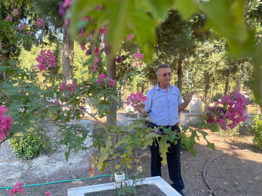 "Bugüne kadar 1500 fidan, çiçek ve süs bitkileri diktik. Mezarlıktaki tüm bitkiler yeraltından çekilen suyla damla sulamayla sulanıyor. Fidanların tamamının hayatta kalmaları, gelişmeleri, büyümeleri, renkli çiçeklerin açması, budaması, gibi her türlü bakımını haftanın belirli günlerinde yapmaya çalışıyorum. Mezarlıktaki çalışmalarım ben sağ oldukça, sağlığım imkan verdikçe devam edecek."