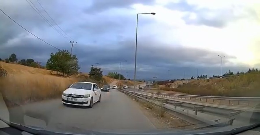 Ölümle burun buruna gelen sürücü, yolun ortasında durarak büyük bir kazanın önüne geçti.