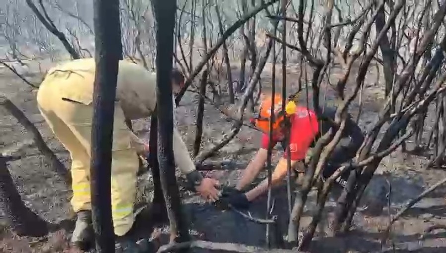 Ekipler yangını söndürmek için çalışırken diğer yandan yanan bölgelerdeki canlıları kurtarıyor.