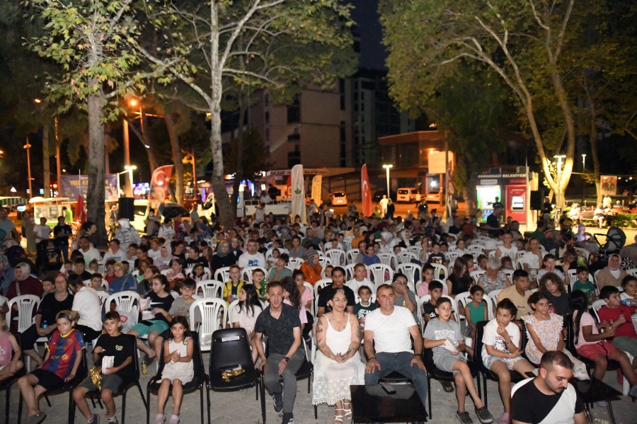 Bursa Osmangazi Belediyesi'nin vatandaşların keyifli yaz akşamları geçirebilmesi için açık havada düzenlediği sinema gösterimlerine çocuklar ve aileler yoğun ilgi gösteriyor.
