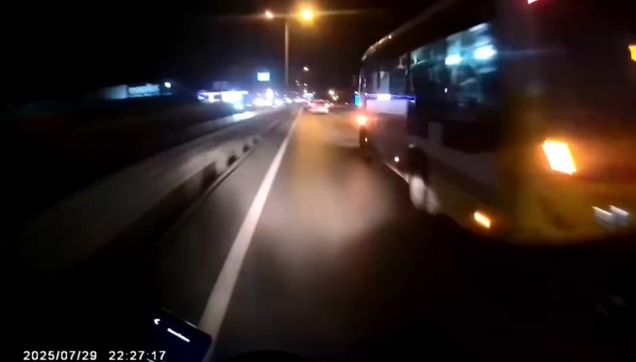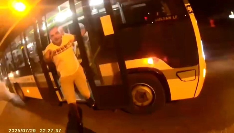 Genç sürücü, kaza yapmaktan son anda kurtuldu. Olayın ardından otobüs şoförü aracını yol kenarına çekip indi ve yol kenarında bekleyen motosikletlinin üzerine yürüyerek tartışma çıkardı.