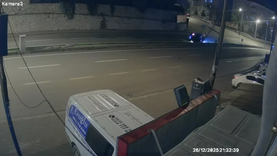 Yaşanan feci kaza, olay yerini gören bir iş yerine ait güvenlik kamerası tarafından saniye saniye kaydedildi. Görüntülerde otomobilin kontrolden çıkarak savrulduğu, ardından takla atıp direğe çarptığı anlar net şekilde yer aldı.