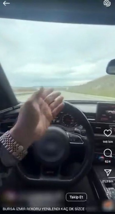 Otoyol Jandarma Komutanlığı ekipleri, sürücünün sosyal medya hesaplarında 307 kilometre hız yaptığı ihlal görüntülerini incelemeye aldı.