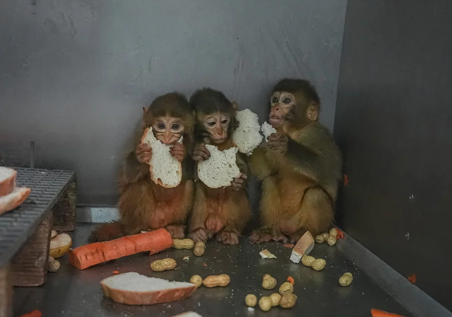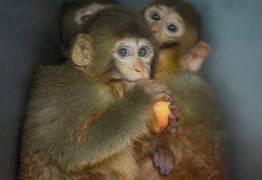 Bursa'da polis ekiplerince gerçekleştirilen denetimlerde yasa dışı barındırıldığı belirlenip el konulan 8 aylık 3 makak maymunu yavrusu, Karacabey ilçesindeki Ovakorusu Celal Acar Yaban Hayvanları Kurtarma ve Rehabilitasyon Merkezi'nde tedavi ve rehabilitasyon sürecine alındı.