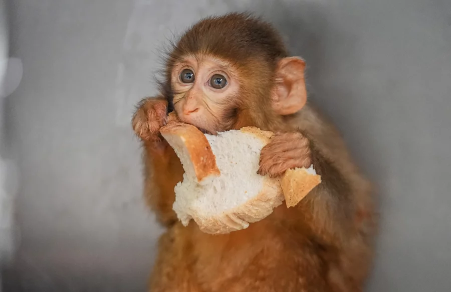 Günde 2 öğün elma, armut, havuç, ayva gibi meyvelerle birlikte fıstık ve merkezin fırınında özel olarak üretilen ekmeklerle beslenen maymunların gelişim süreçleri veteriner hekimlerce yakından takip ediliyor.