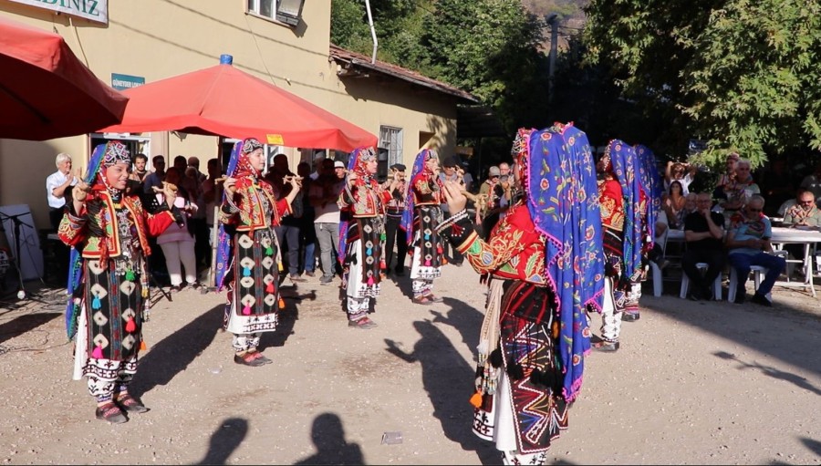 Yörük-Türkmen kültürünün yaşatıldığı düğünde gelin ve damat, geleneksel kıyafetler giydi. Köy meydanına kurulan Yörük çadırında, yerel sanatçı Mehtap Takmalı'nın türküleri eşliğinde kına gecesi düzenlendi. Gelinin ellerine kına yakılırken duygusal anlar yaşandı.