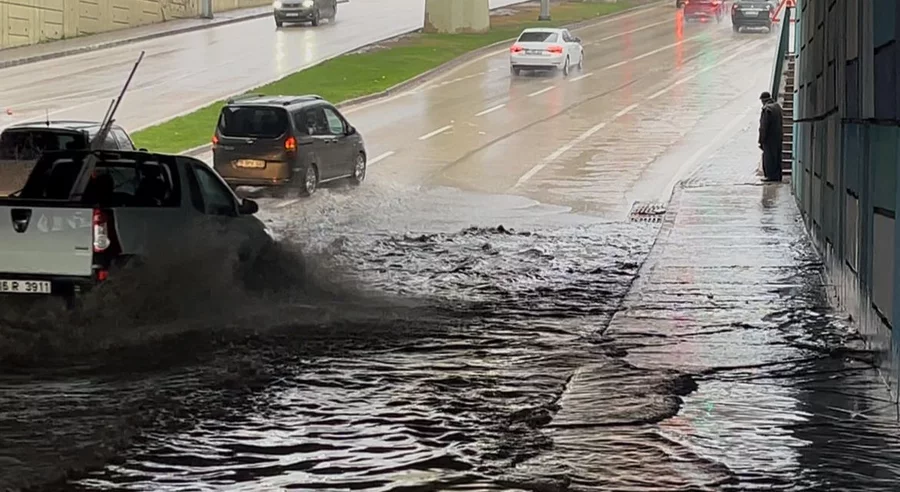 Bursa'da bir süredir devam eden lodos, yerini sağanak yağışa bıraktı. Yoğun yağışın ardından alt geçitte biriken sular, zaman zaman araç trafiğinin yoğun olduğu kavşakta ulaşımı olumsuz etkiledi. Su seviyesinin yükselmesiyle birlikte sular kaldırımlara kadar taştı.