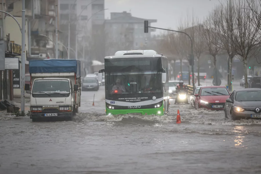 Bursa'da sabah saatleri itibariyle etkisini gösteren sağanak yağış, kent merkezini göle çevirdi. Gökdere Kavşağı'nda yağış nedeniyle alt geçit suyla dolarak kullanılamaz hale geldi.