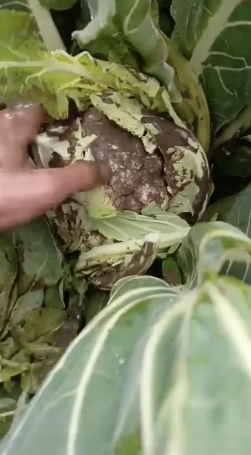 Çiftçi tarafından kaydedilen görüntülerde, karnabaharların tamamen çamur içinde kaldığı ve ürünlerin büyük bölümünün zarar gördüğü kaydedildi.