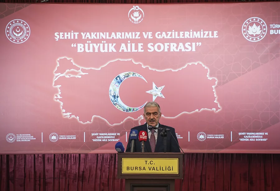 Bursa'da, "Büyük Aile Sofraları" programı kapsamında şehit yakınları, gaziler ve gazi yakınları iftarda bir araya geldi.