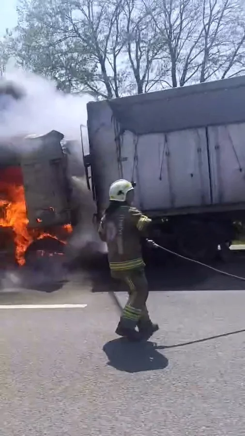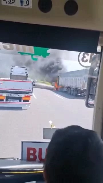 Bursa'dan İnegöl'e seyir halinde olan sürücü Mehmet Ö. Yönetimindeki 10 ER 225 plakalı tırın motor kısmından dumanlar çıkmaya başladı.