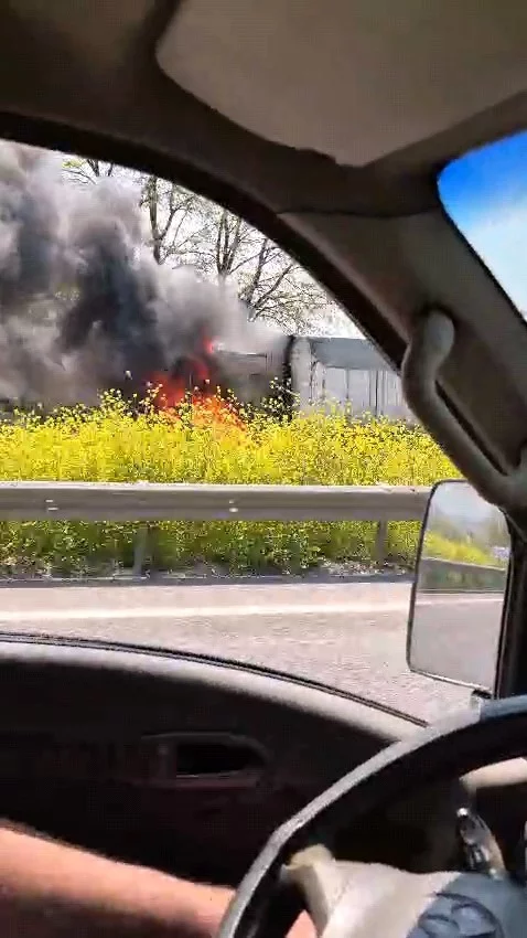 Durumu fark eden sürücü aracını yol kenarına park edip itfaiyeye haber verdi.