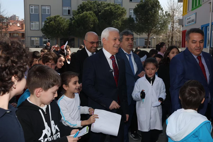 Bursa Büyükşehir Belediye Başkanı Mustafa Bozbey, minik öğrencinin daveti üzerine okulu ziyaret ederek öğrencilerle bir araya geldi.