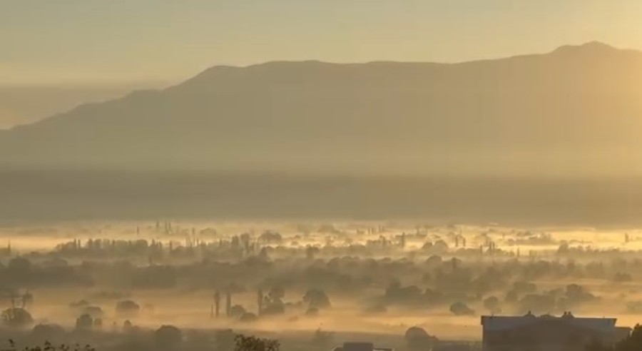 Sabah saatlerinde doğan güneş, yoğun sis tabakasının ardında adeta kayboldu.