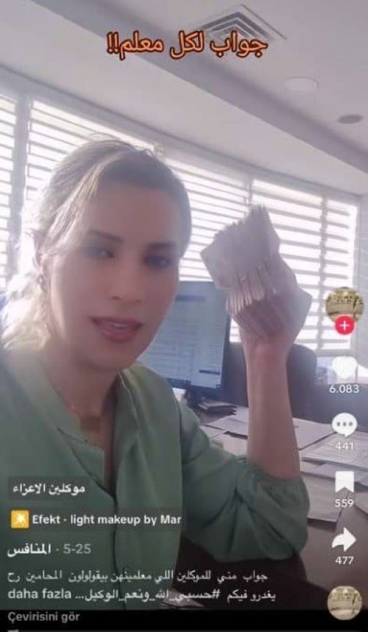 Adliyelerin önünde veya avukat bürosunda elinde tomar tomar paralarla Arapça videolar çekip yayınlıyor.