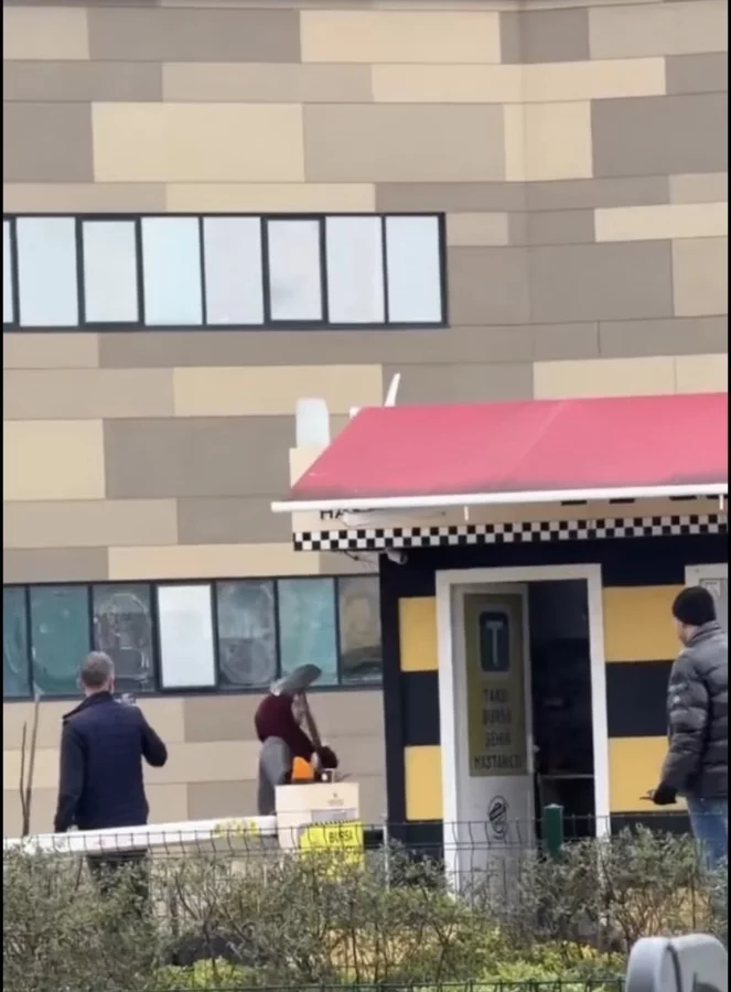 Bursa Şehir Hastanesi taksi durağında içinde yolcu dolu taksiye alınmadığı gerekçesiyle sinir krizi geçiren sağlıkçı bir kadın, camlar ve elektronik ekipmanlara zarar verdi. Olayda yaklaşık 150 bin liralık maddi hasar oluştu. O anlar kameraya yansırken, kadını görenler şaşkınlık yaşadı.
