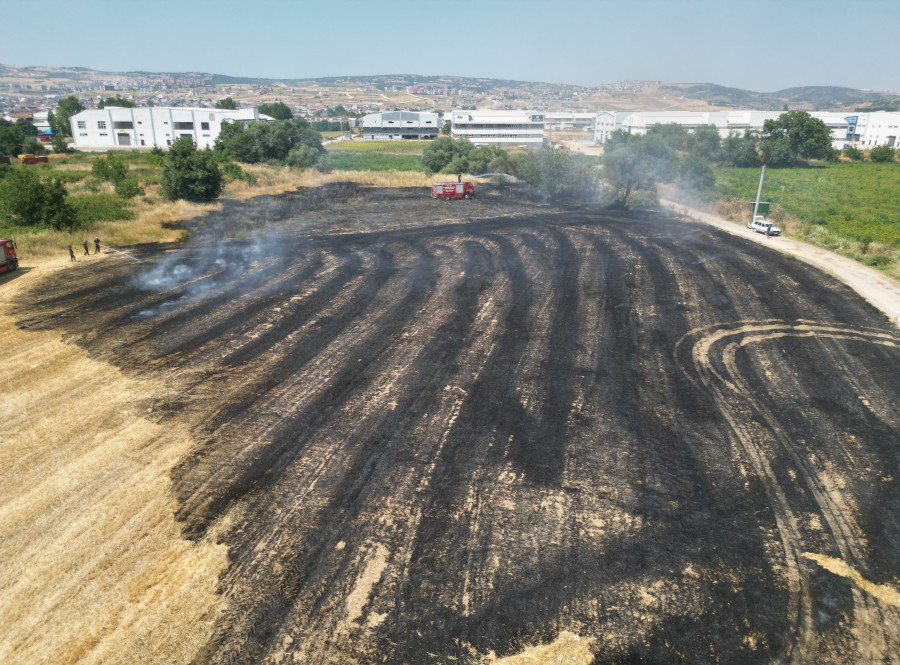 Akhisar Mahallesi Kalburt mevkisinde bir tarlada henüz belirlenemeyen nedenle yangın çıktı.