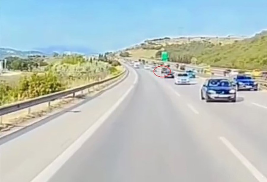 İzmir-İstanbul otobanında ilerleyen sürücüler, bazı bölgelerde yoğun bir trafikle karşılaştı. Bu yoğunluktan sıkılan sürücülerden biri, hızla akan trafiği tehlikeye düşürerek en soldan en sağ şeride zikzak çizerek geçti. Daha sonra emniyet şeridini de ihlal eden sürücü, önündeki çekici kamyonu da sağladı.