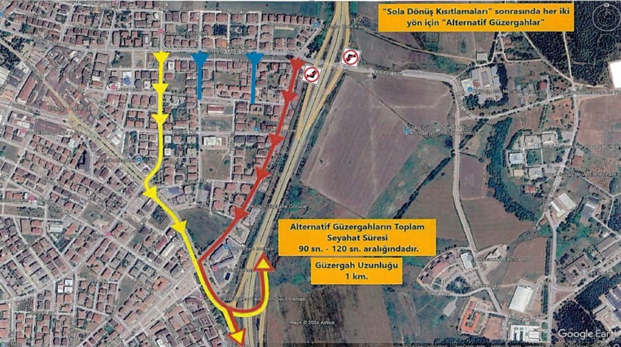 Sürücülerin kavşak bölgesindeki trafik işaret ve işaretçilerine uyması ve belirtilen alternatif güzergahları tercih etmeleri gerekmektedir."