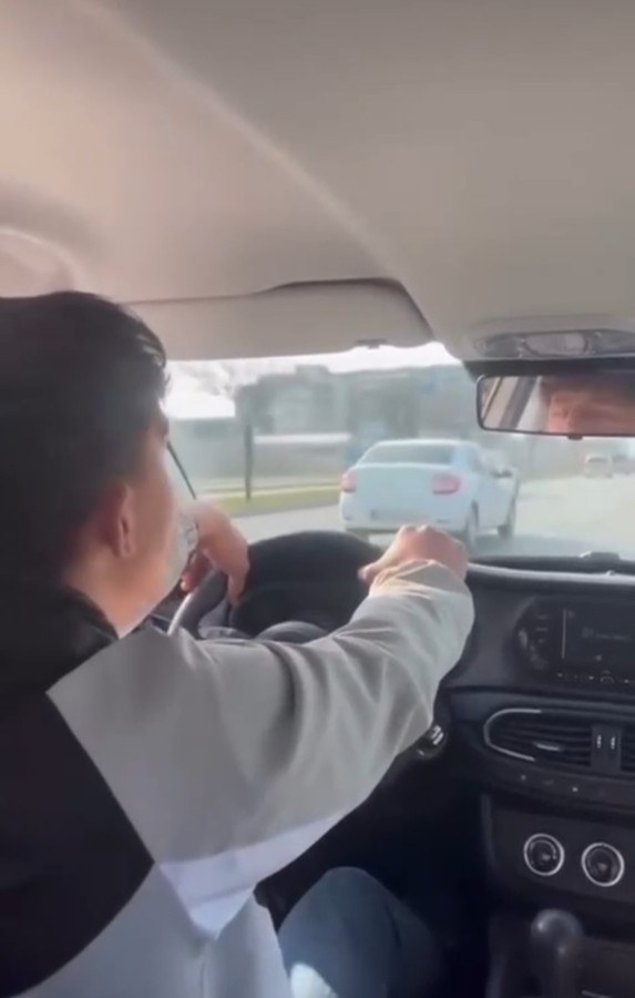 İlginç direksiyon tutuşu ve yaptığı ani manevralarla kazaya davetiye çıkaran sürücü, o anları arka koltukta oturan arkadaşına cep telefonuyla kayda aldırdı.